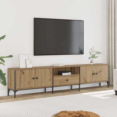 • Material durabil și robust: Lemnul prelucrat este de o calitate excepțională, cu o suprafață netedă și, de asemenea, are rezistență, stabilitate și rezistență la umiditate. Cadrul metalic al suportului TV asigură robustețe și stabilitate.